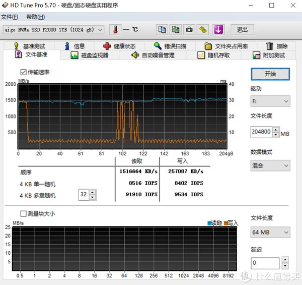 依然是200GB测试。值得注意的是现在硬盘已经有718GB占用了,增加了200GB的测试几乎就把953GB的硬盘占满了,因此才说这真的是暴力测试啊!心继续滴血……?